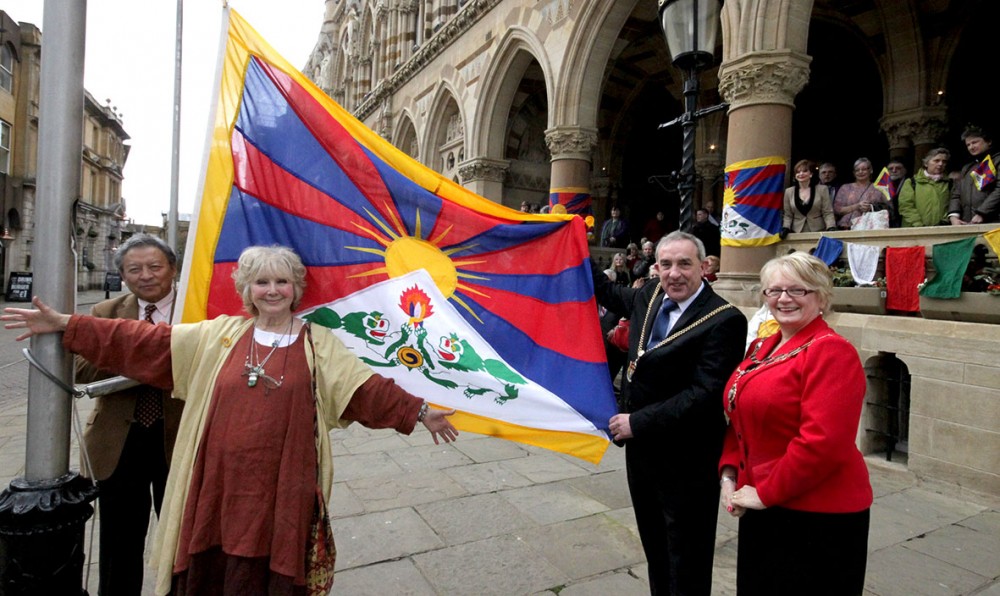 Shine A Light on Tibet was started in 1999 by Caroline Scattergood by raising the Tibetan flag with the then Mayor, Ulrick Gravesande, outside the Guildhall. On the 5th March it was raised again, just as it has been every year since.